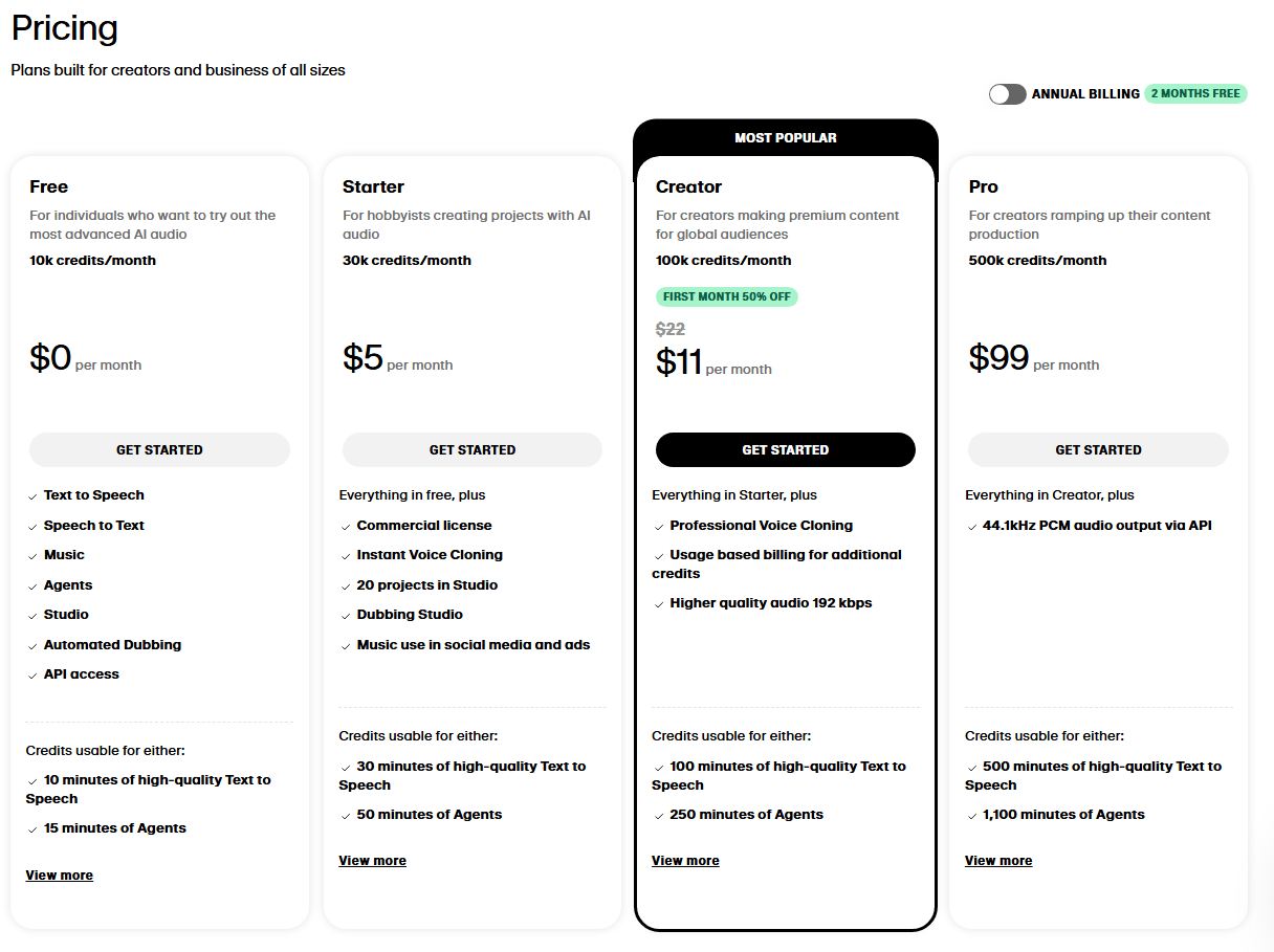 Once you’re ready to scale, there are paid plans that unlock more voice minutes and extra features like advanced cloning.
